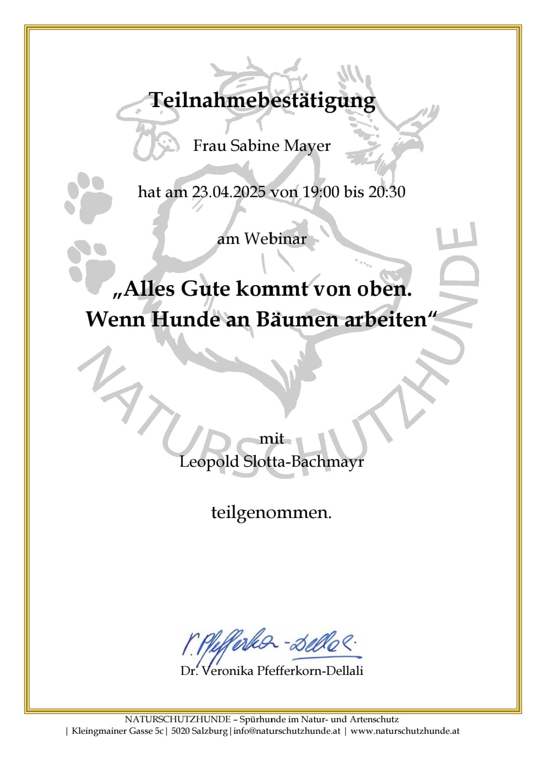 ► Veterinäramtliche Zertifizierung als Hundetrainerin nach Paragraph 11 Tierschutzgesetz