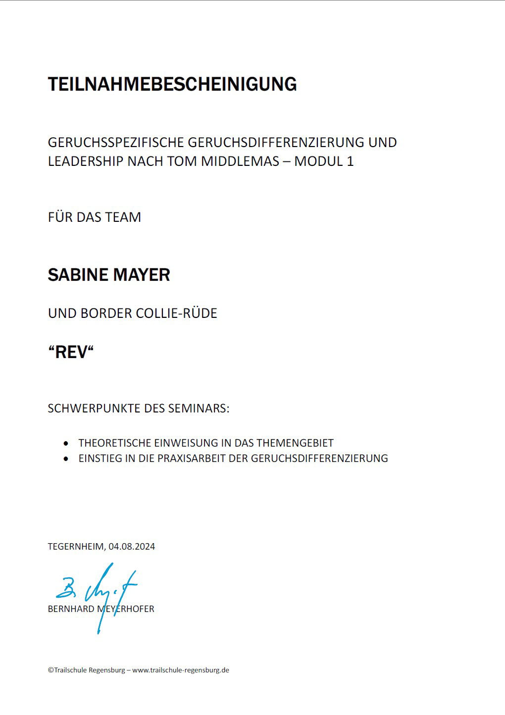 ► In Ausbildung zur Mantrailingtrainerin bei der "Trailschule Regensburg" (Bernhard Meyerhofer)